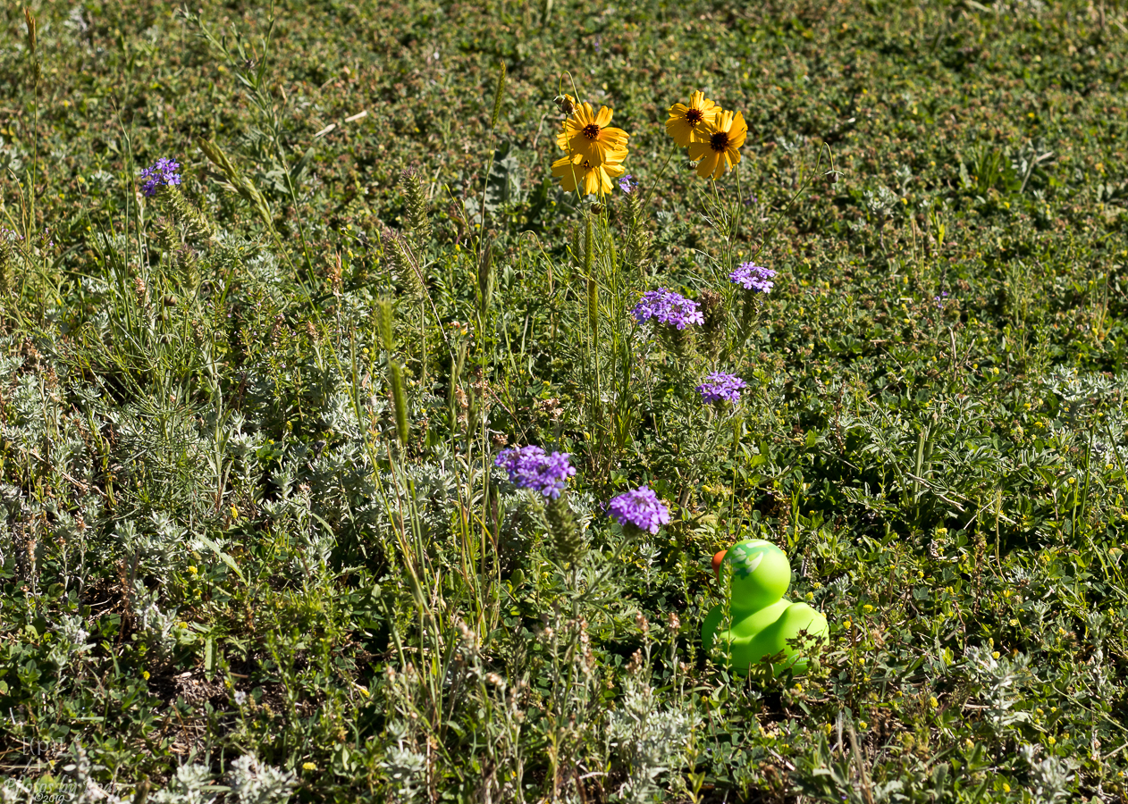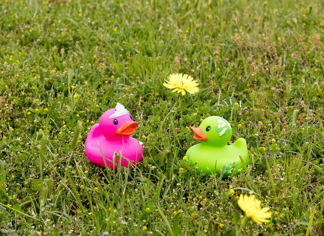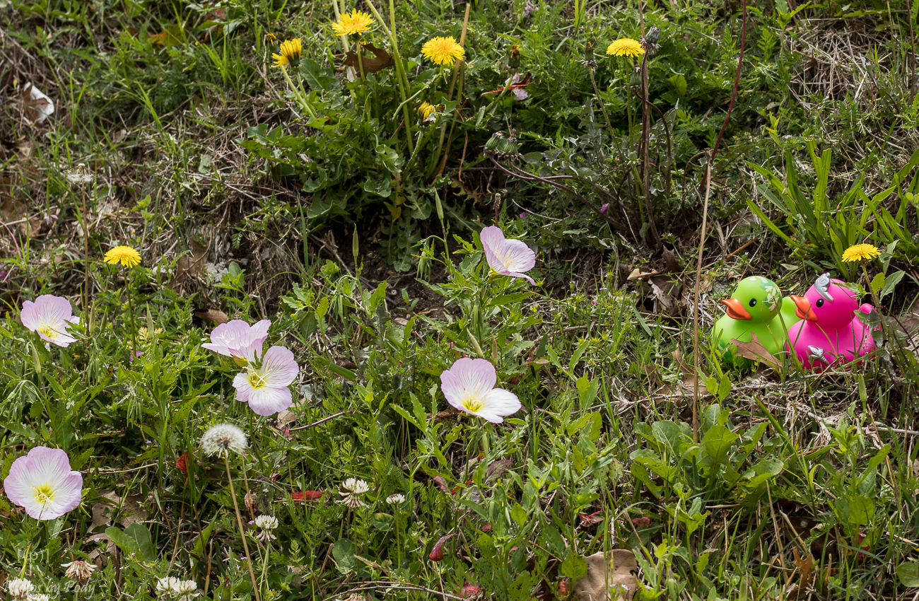 They have taken many long walks, rubber wing in rubber wing. Waddling across the walkway, they stop to see the yellow wildflowers in the open lots behind the park. Adriana and Zeb are partial to the yellow flowers since many of their friends and relatives in the rubber duck heritage are yellow.