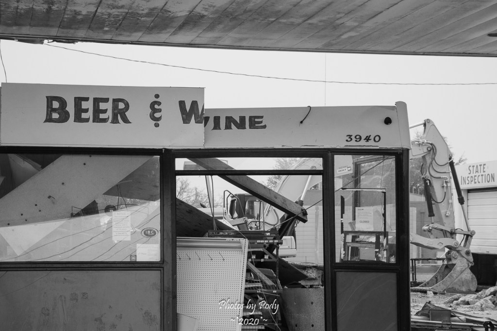 I suppose I am drawn to the demolition of buildings and structures around town. Down the street from our house, another Gas station/Convenience store is being demolished to make way for something new and better.