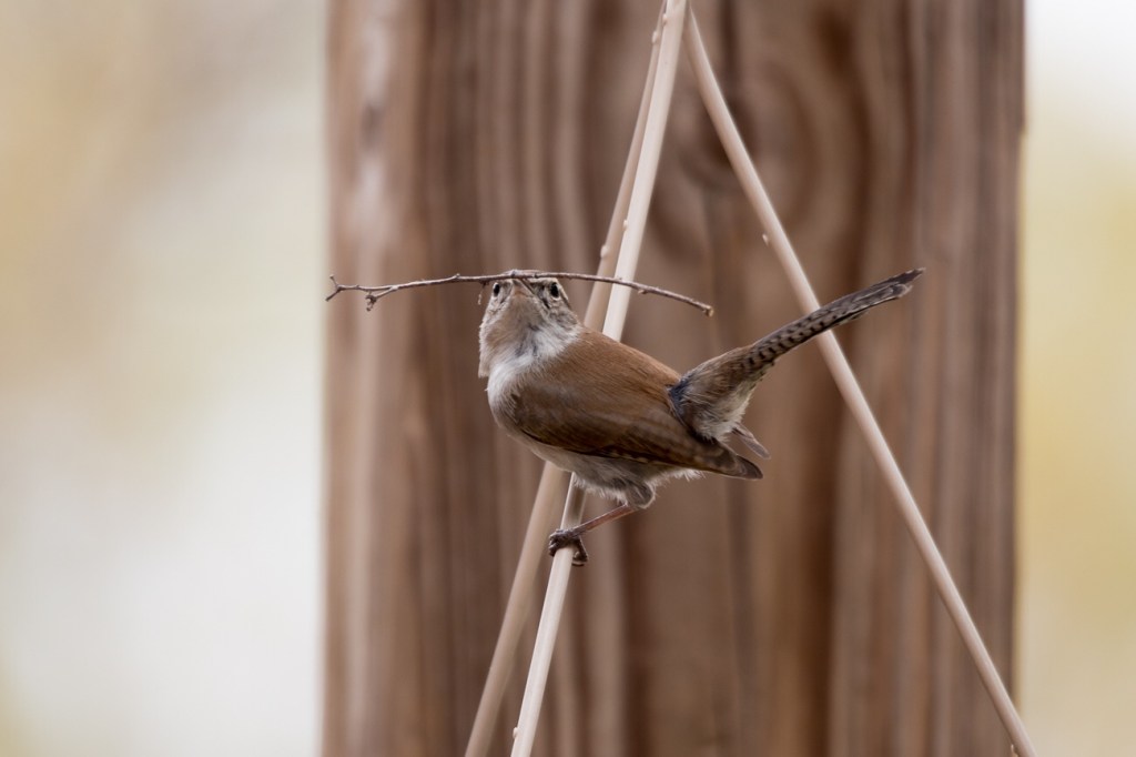 This little bird has a loud voice and building a nest in my backyard.