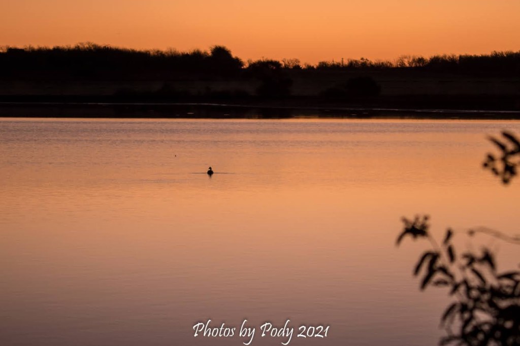 The first shot of a duck for the day. It was swimming away from the sunrise but turned around.